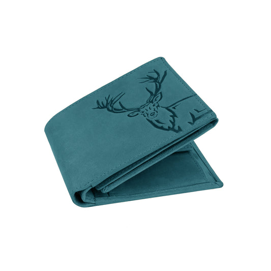 OMAX Aqua Blue Elk Embossed Design Genuine Leather Mens Wallet with Free Rakhi for Brother RBFW253