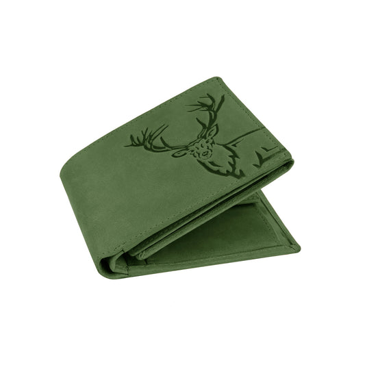 OMAX Olive Elk Embossed Design Genuine Leather Mens Wallet with Free Rakhi for Brother RBFW253
