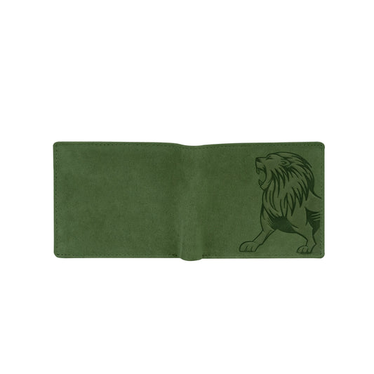 OMAX Olive Lion Embossed Design Genuine Leather Mens Wallet with Free Rakhi for Brother RBFW253