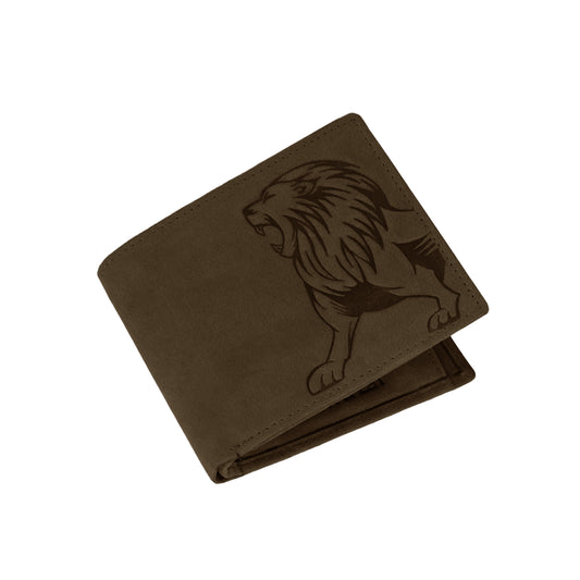 OMAX Brown Lion Embossed Design Genuine Leather Mens Wallet with Free Rakhi for Brother RBFW253