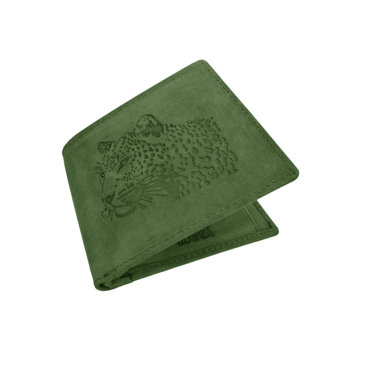 OMAX Olive Leopard Embossed Design Genuine Leather Mens Wallet with Free Rakhi for Brother RBFW253