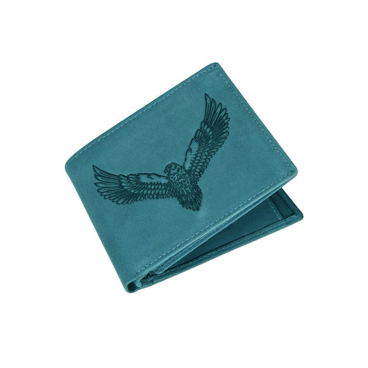 OMAX Aqua Blue Eagle Embossed Design Genuine Leather Mens Wallet with Free Rakhi for Brother RBFW253