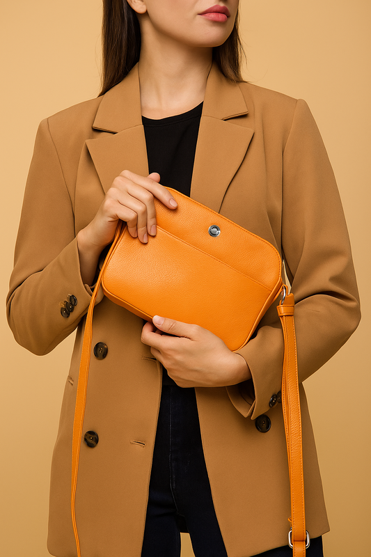Omax Orange Color Genuine Leather Mini Satchel Handbag for Women FL21