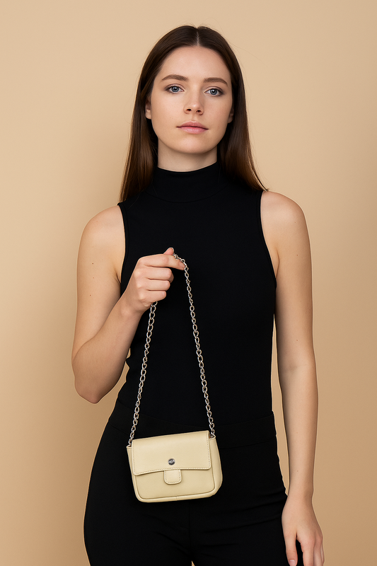 Omax Beige Color Genuine Leather Mini Satchel Handbag for Women FL21