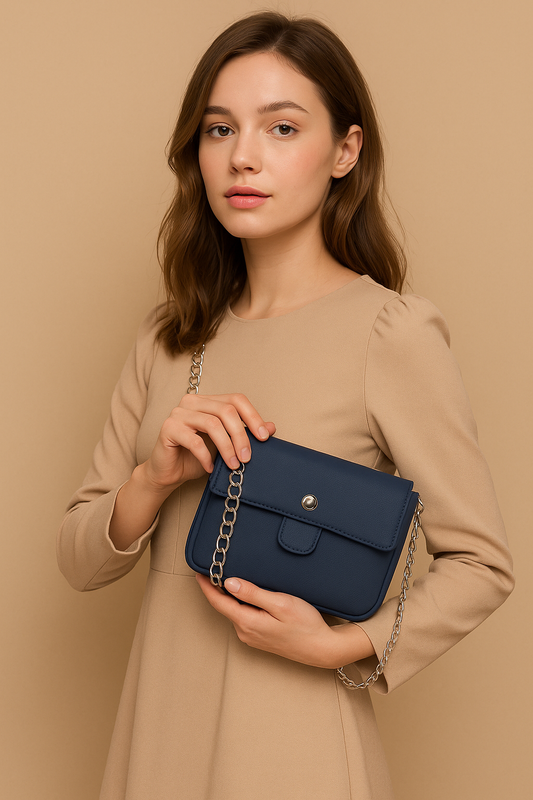 Omax Blue Genuine Leather Muilti Compartment Siling Bag for Women - FL24