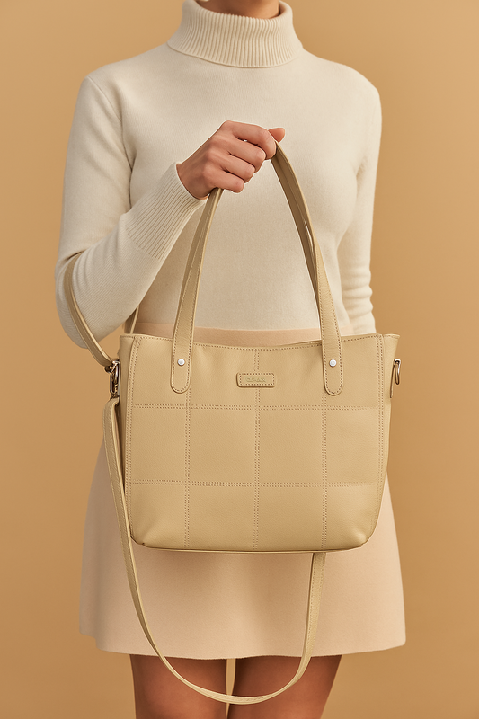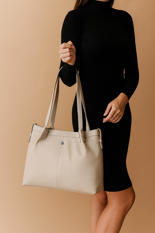 Boshek Beige Stylish Real Leather Tote Shoulder Handbag for Women-FL32