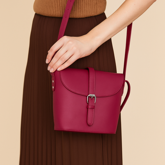 Omax Maroon Genuine Leather Muilti Compartment Siling Bag for Women - FL24