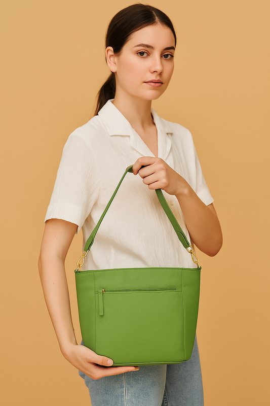 Omax Olive Green Genuine Leather Shoulder Handbag for Women FL33