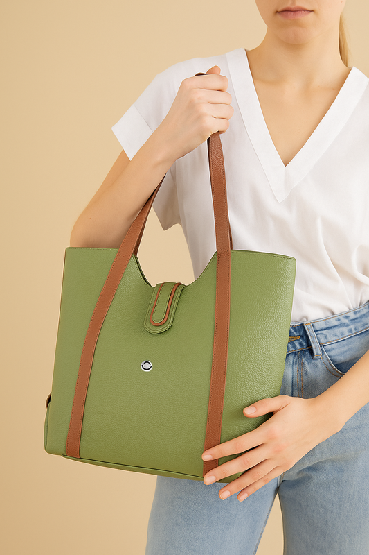Omax Olive Full Grain Genuine Leather Tote Shoulder Bag for Women FL19