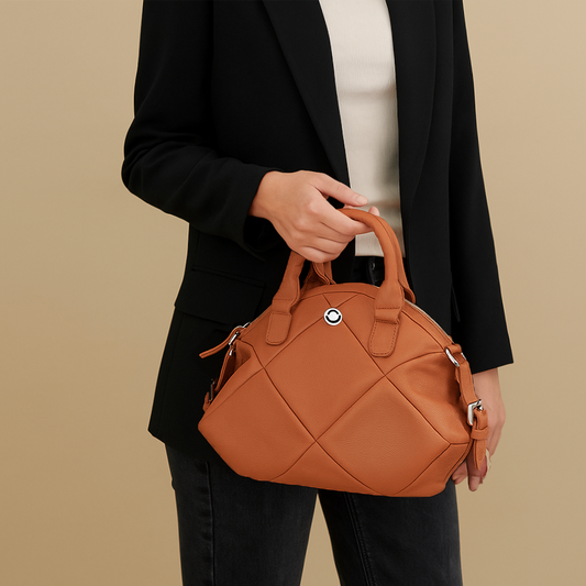 Omax Tan Full Grain Genuine Leather Unique Football Style Handbag for Women LTHRL1