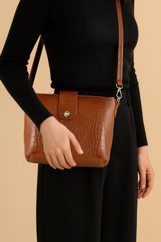 Omax Tan Croco Printed Genuine Leather Shoulder Ladies Handbag a perfect blend of style FL11