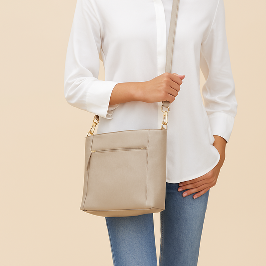 Omax Beige Soft Genuine Leather with Premium Accessories Handbags & Shoulder Bags for Women LTHRL2