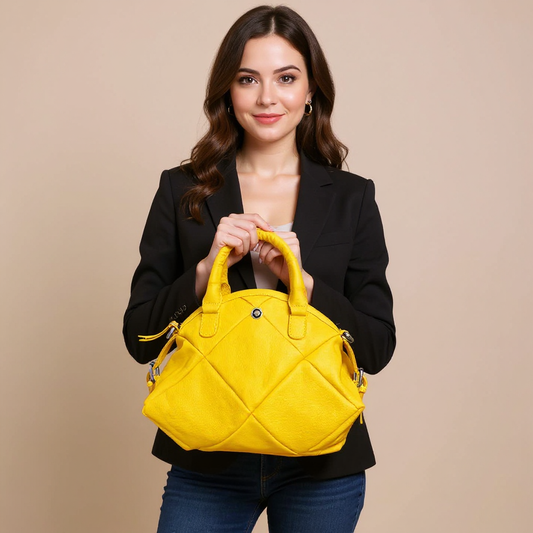 Omax Yellow Full Grain Genuine Leather Unique Football Style Handbag for Women LTHRL1