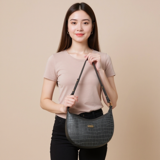 Omax Black Halfmoon Design Genuine Leather Sling Bag LTHRL5