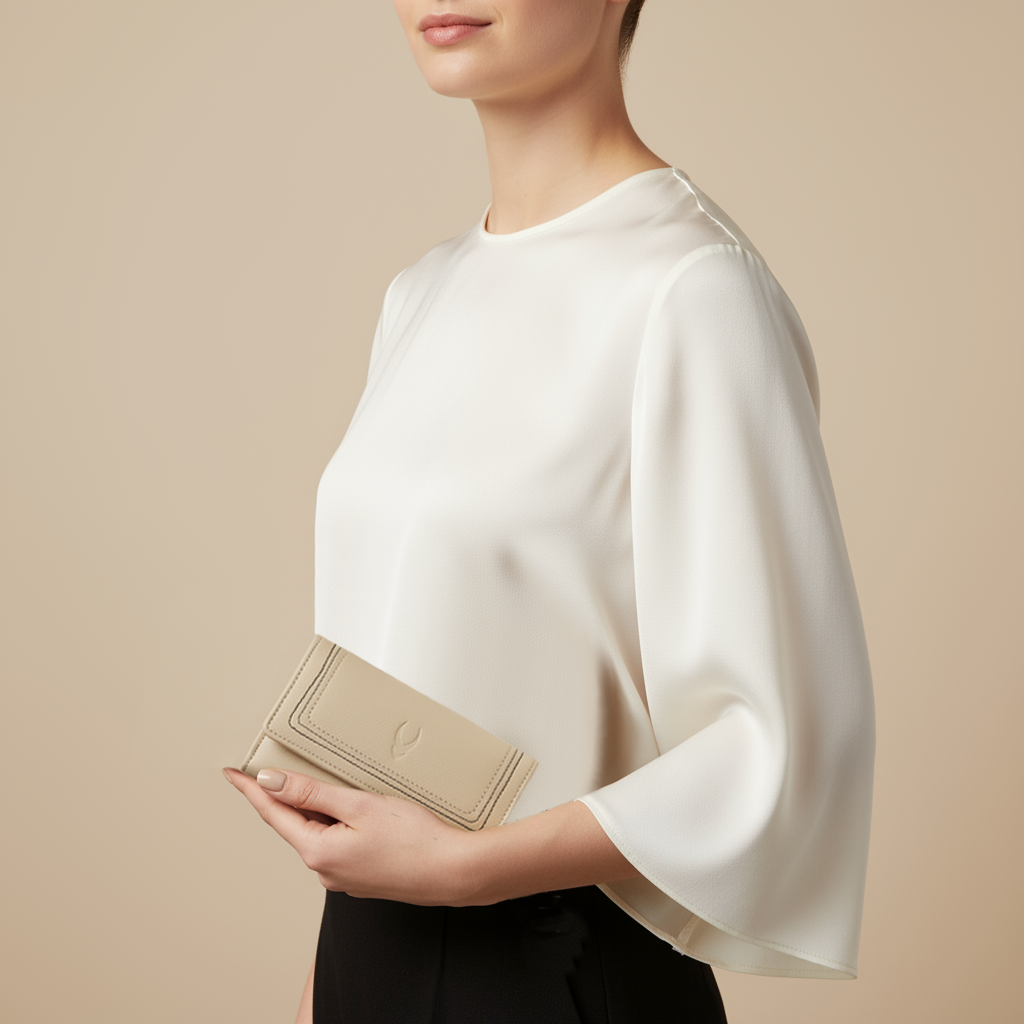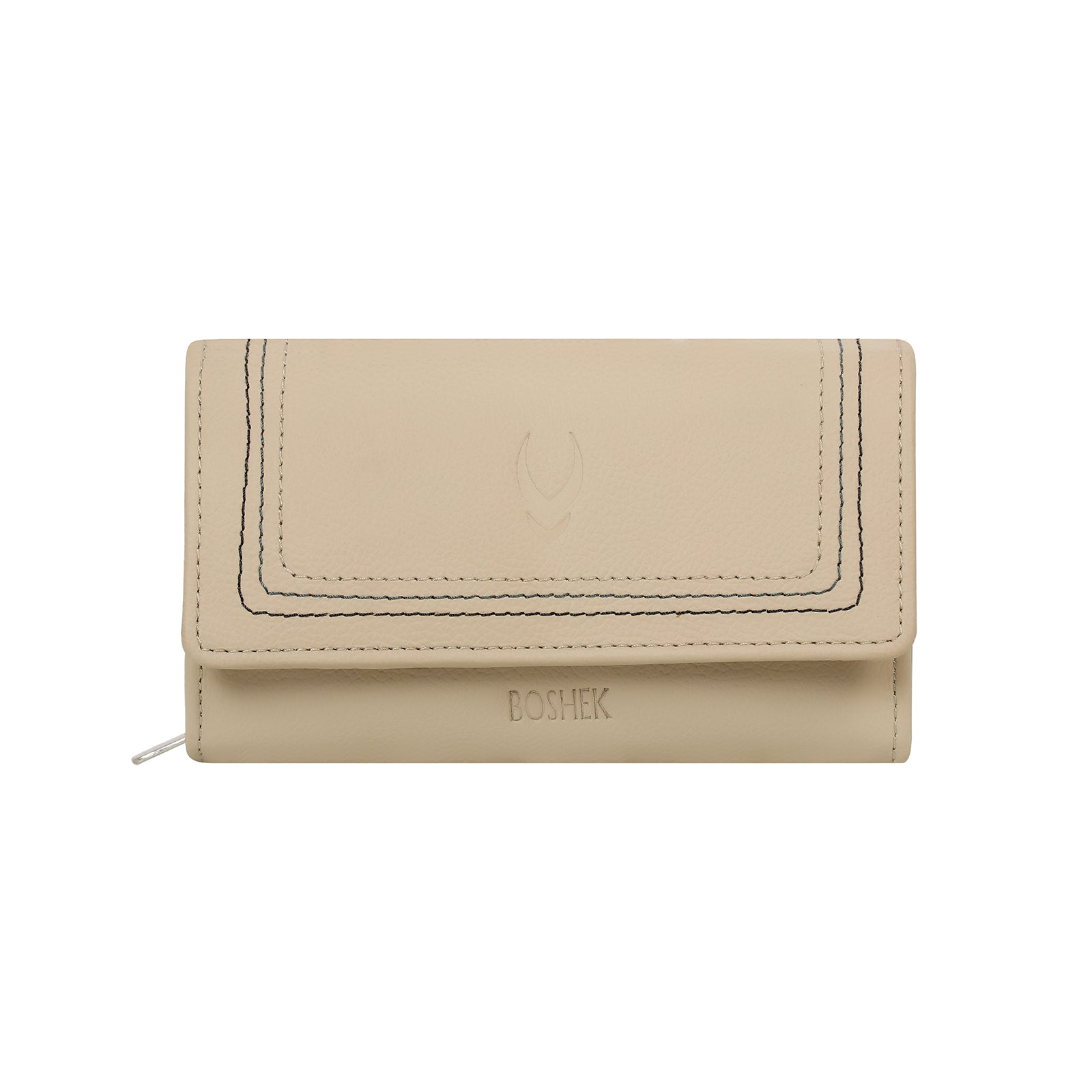 Boshek Beige Genuine Leather Clutch Purse for Women