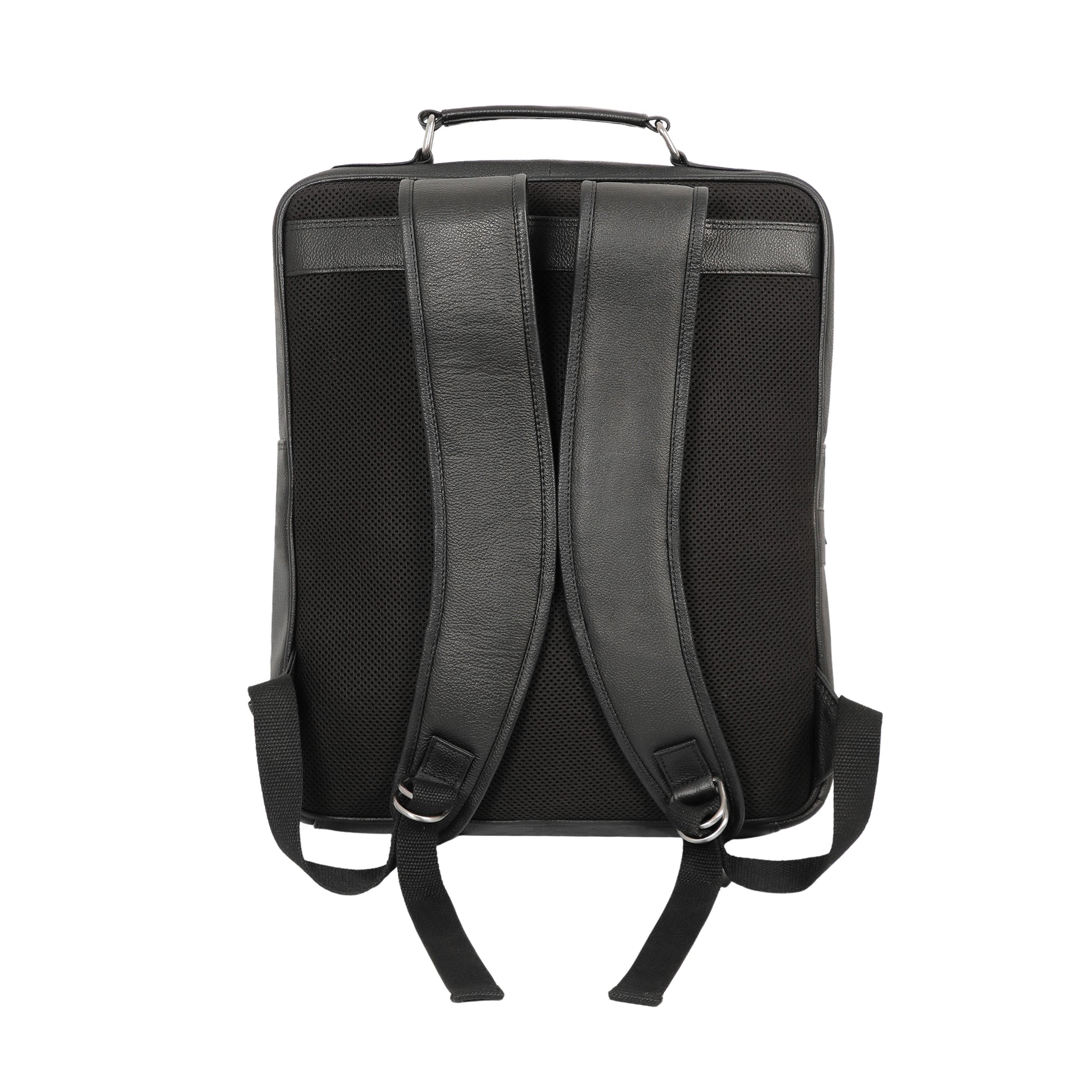 Omax Black Full Grain Genuine Leather Office Backpack for Men, 15.6 Inch Professional Laptop Bag with Adjustable Straps and Multiple Compartments FT64