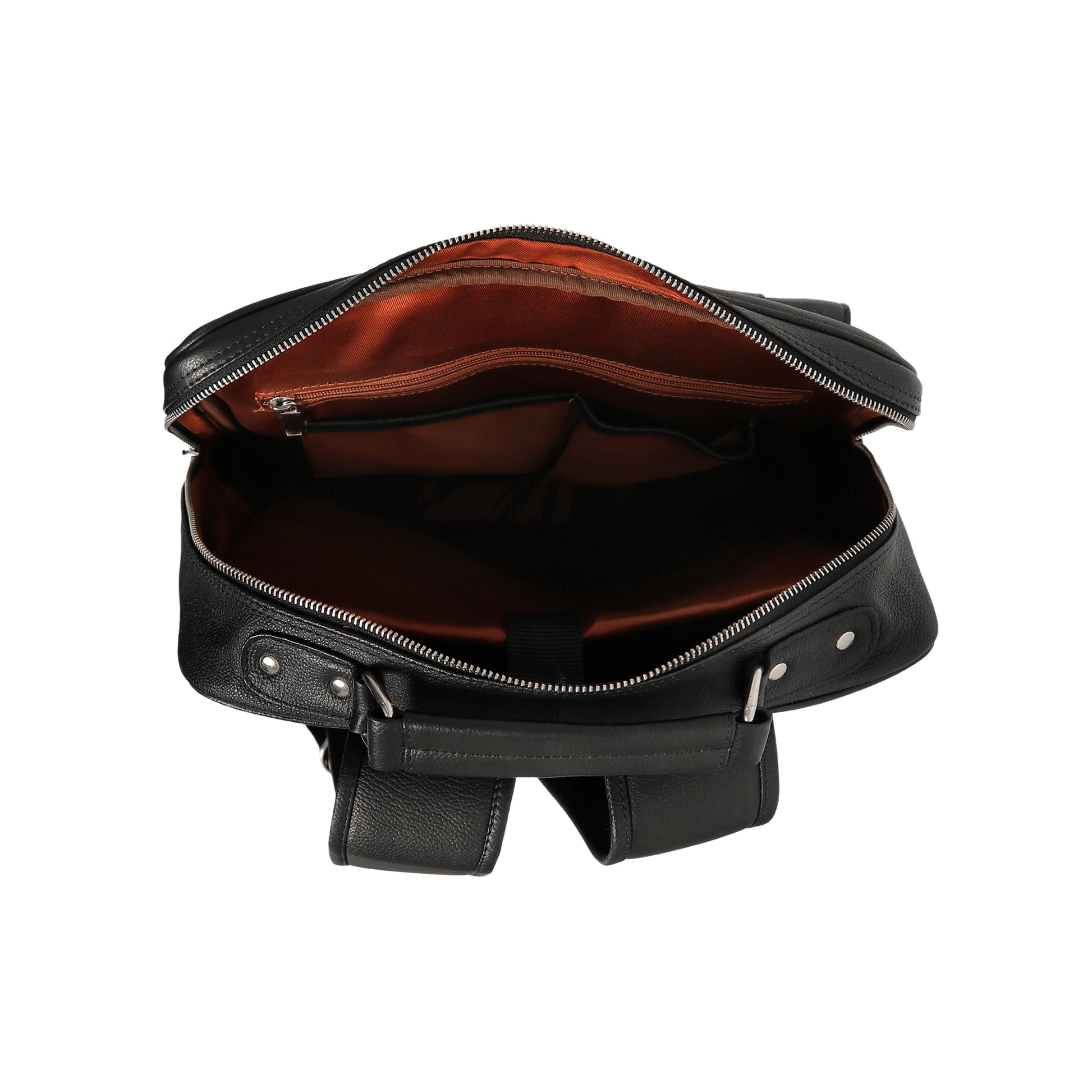 Professional style with the Omax Black Full Grain Genuine Leather Office Backpack, designed for the modern man. Crafted from premium full-grain genuine leather, this 15.6-inch laptop bag offers both durability and sophistication. Its sleek, professional look is perfect for business settings, while the ergonomic design ensures comfort during your daily commute.