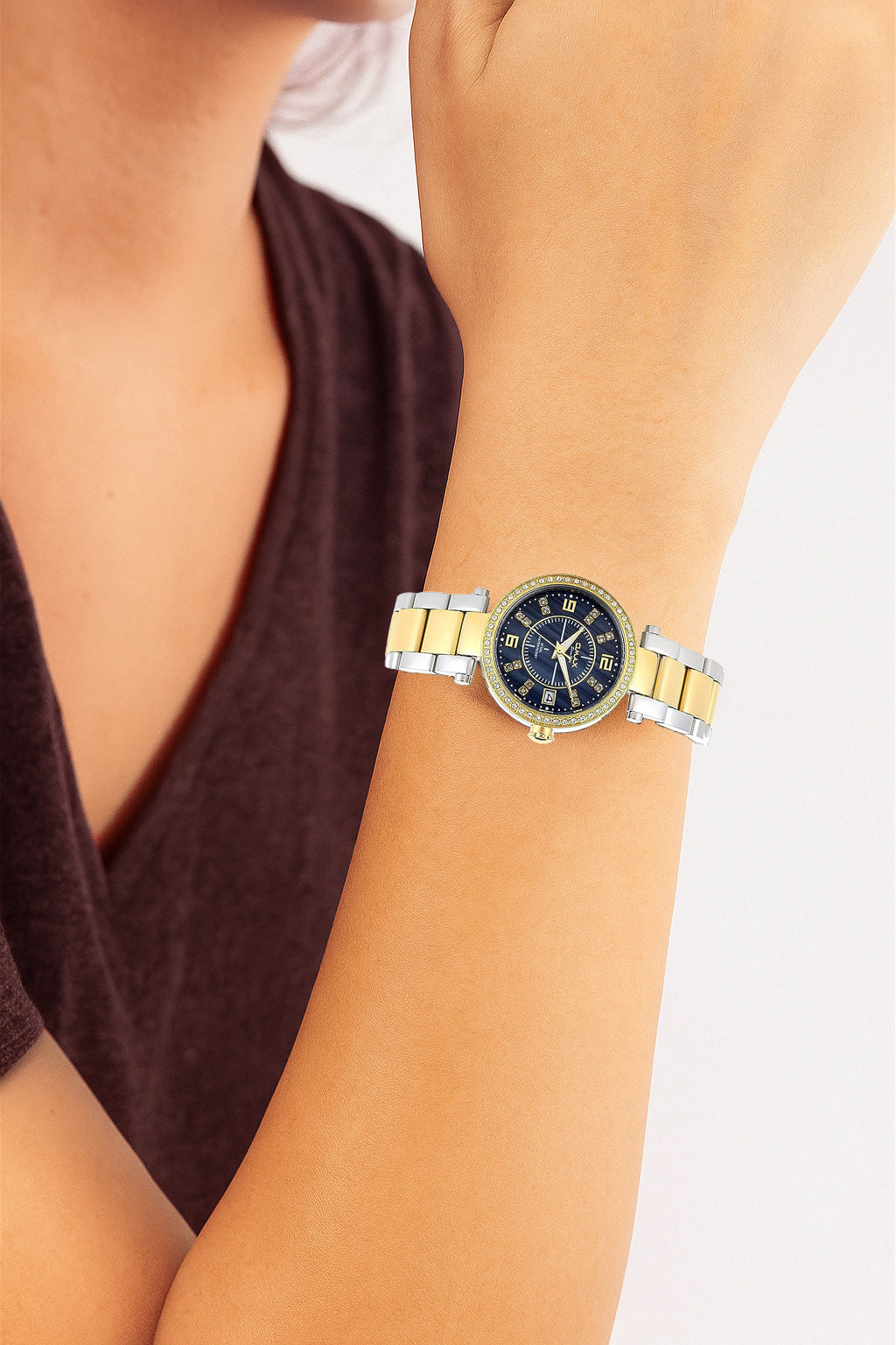 "The watch might include features such as date display, luminous hands, or markers, depending on the specific model.This watch combines the classic elegance of gold and silver tones with the sophisticated charm of a mother of pearl dial, making it an exquisite accessory for any occasion."