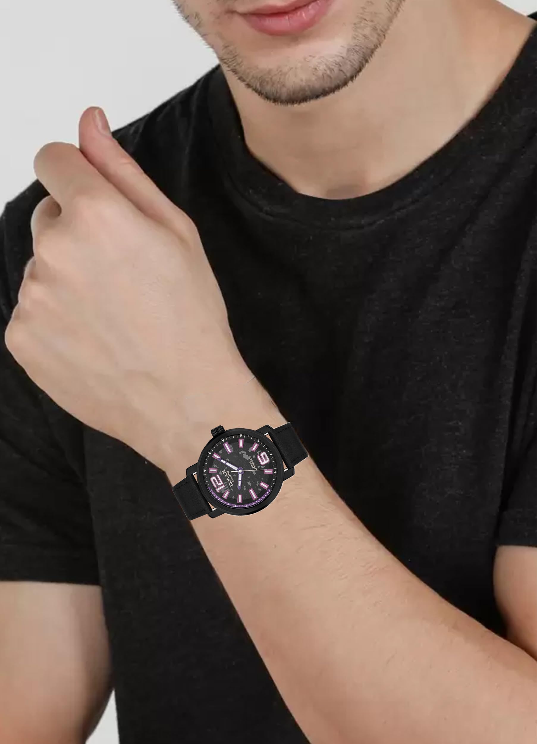 Omax Black Analog Dial Purple Index With Black Genuine Leather Strap Watch for Men GX18M22U