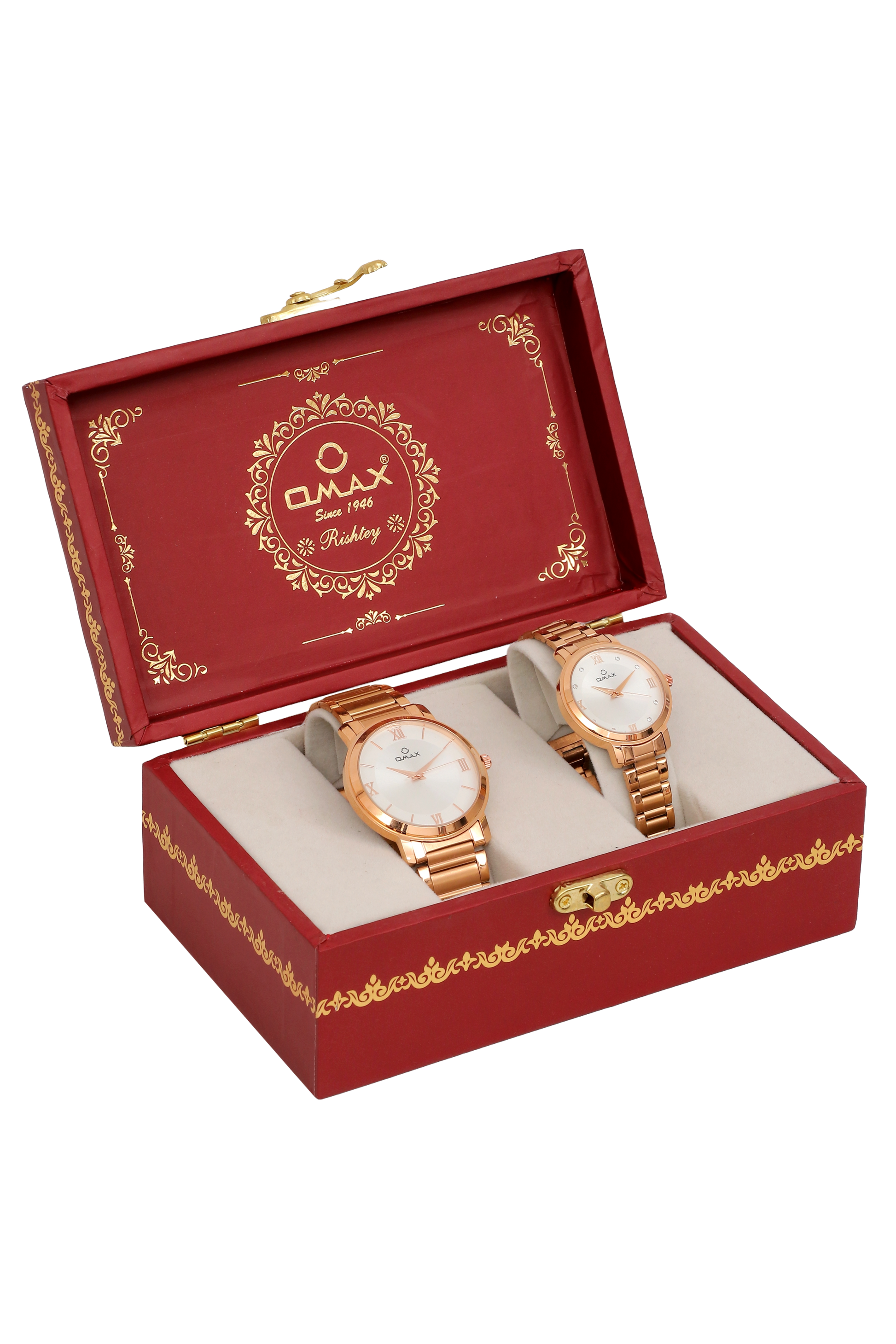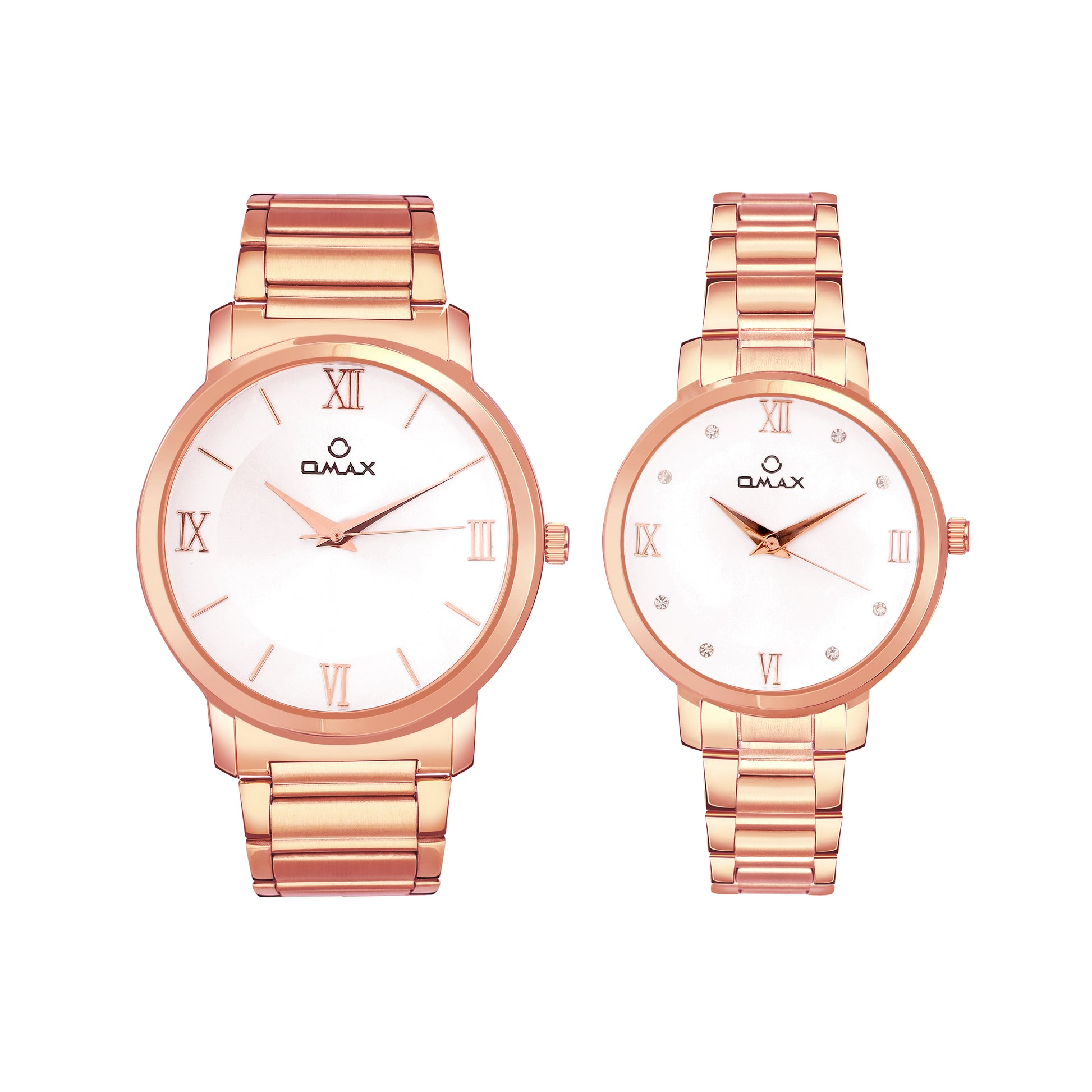 OMAX Analog White Dial with Rose Gold Stainless Steel Strap Watch Pair for Couple -CPL03