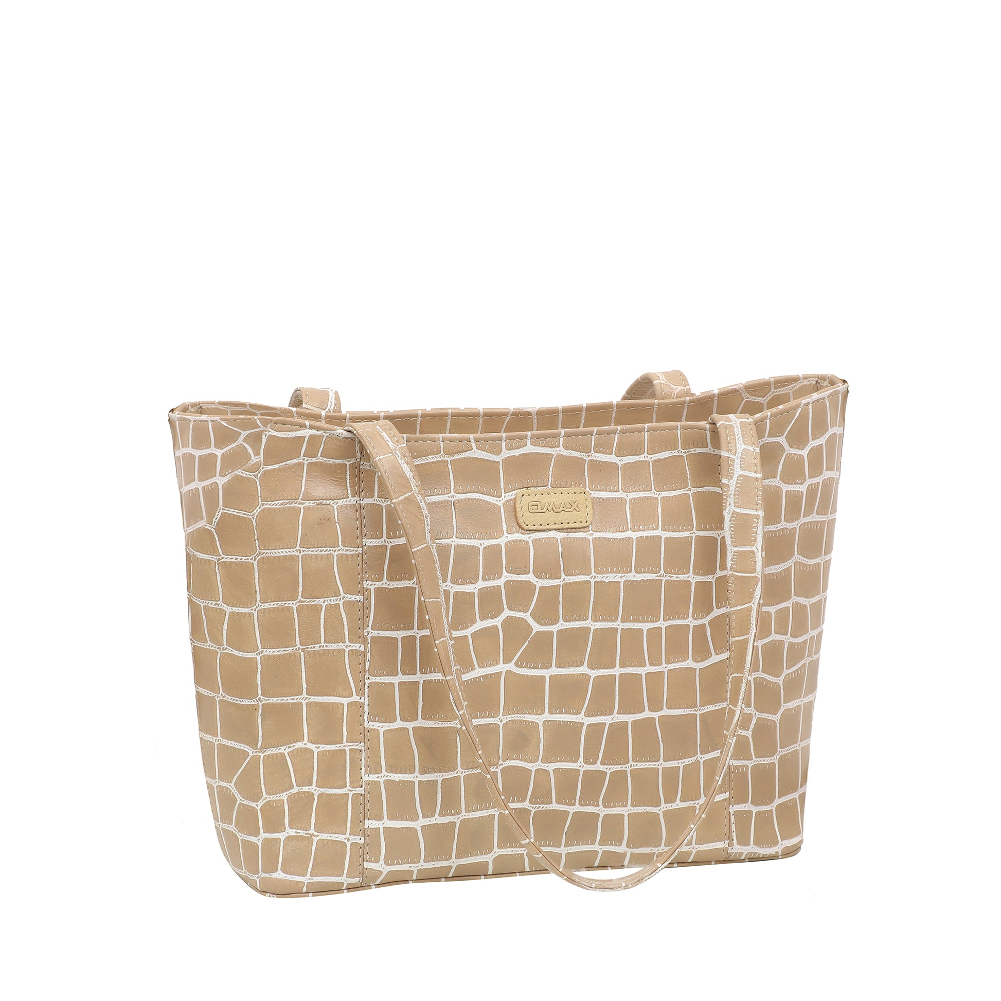 Omax Beige Croco Genuine Leather Medium Tote Handbag for women LTHRL7
