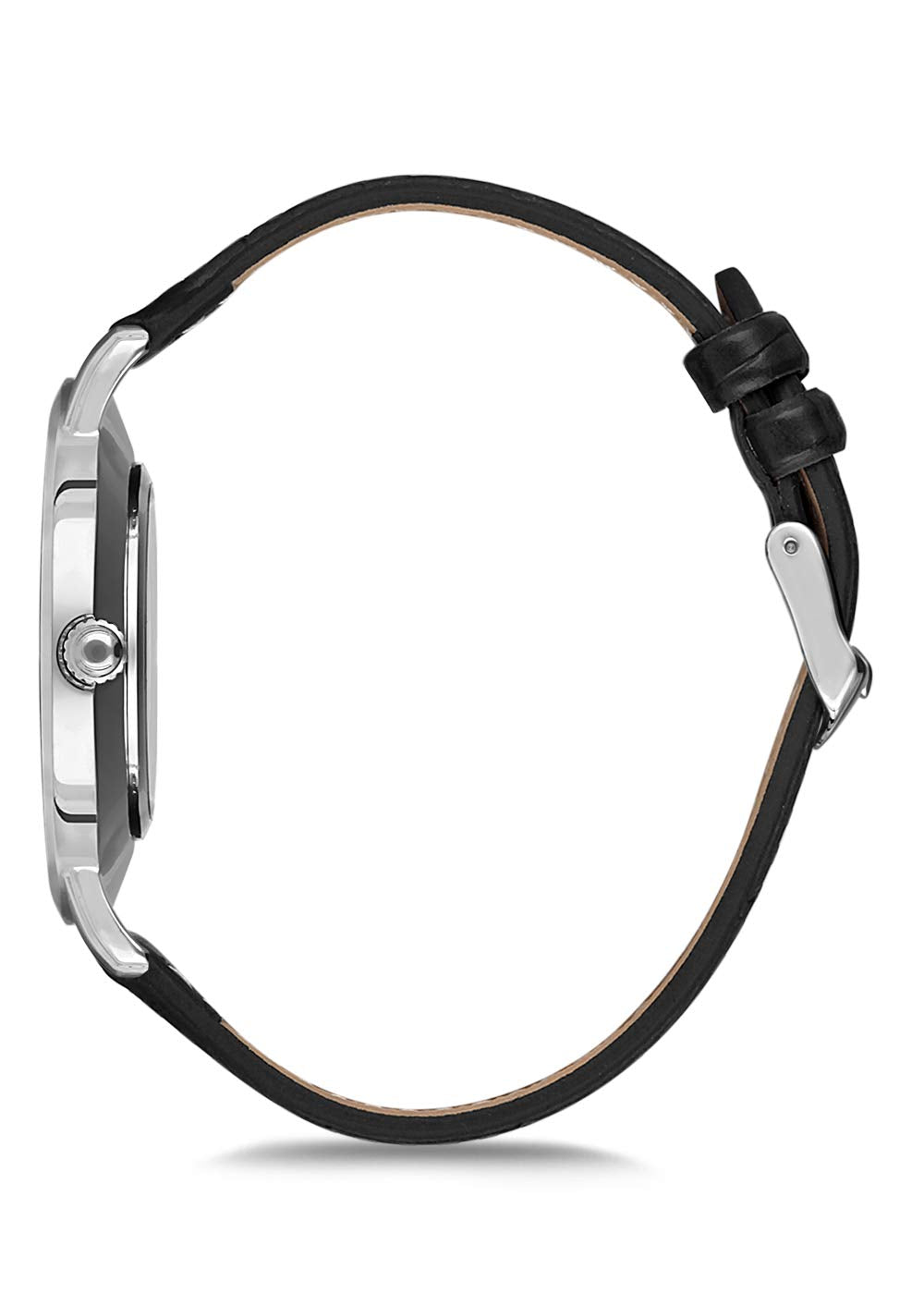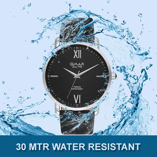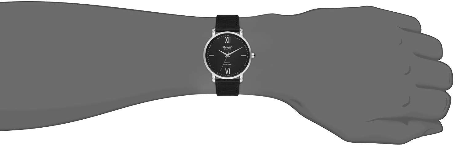 Omax Black Dial Silver Case and Index with Black Leather Watch for Men- GU03P22I