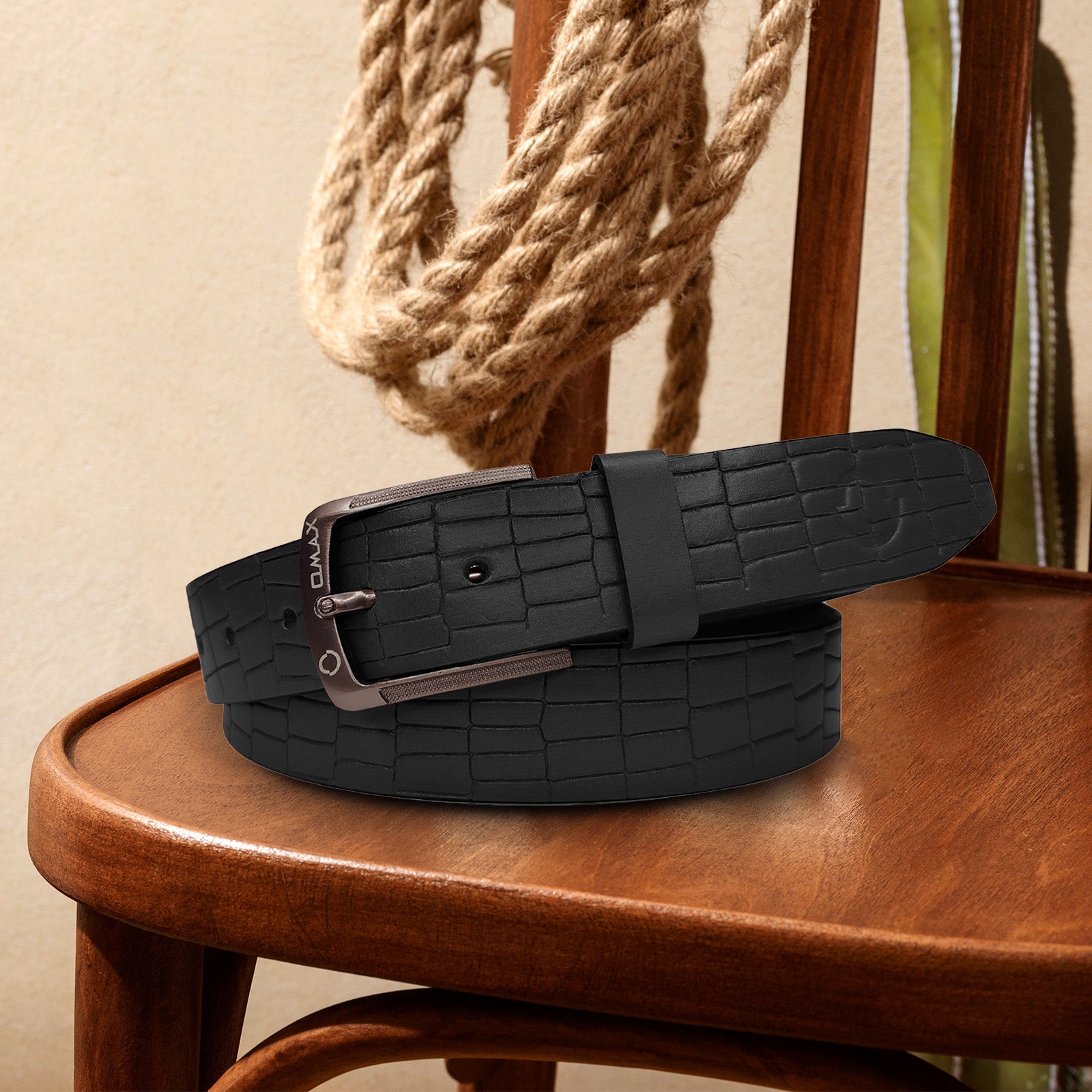Omax Black Genuine Leather Premium Unique Design Belts for men BLTBTL028