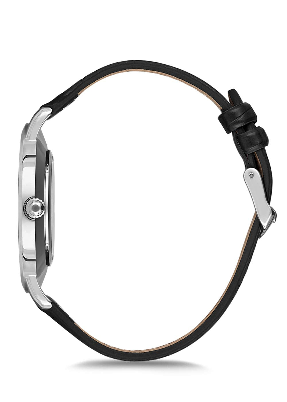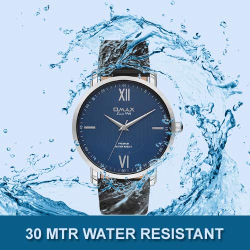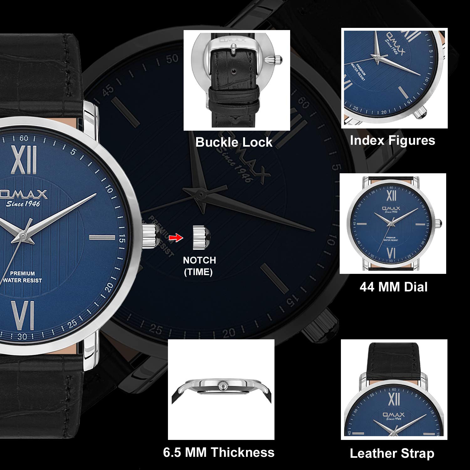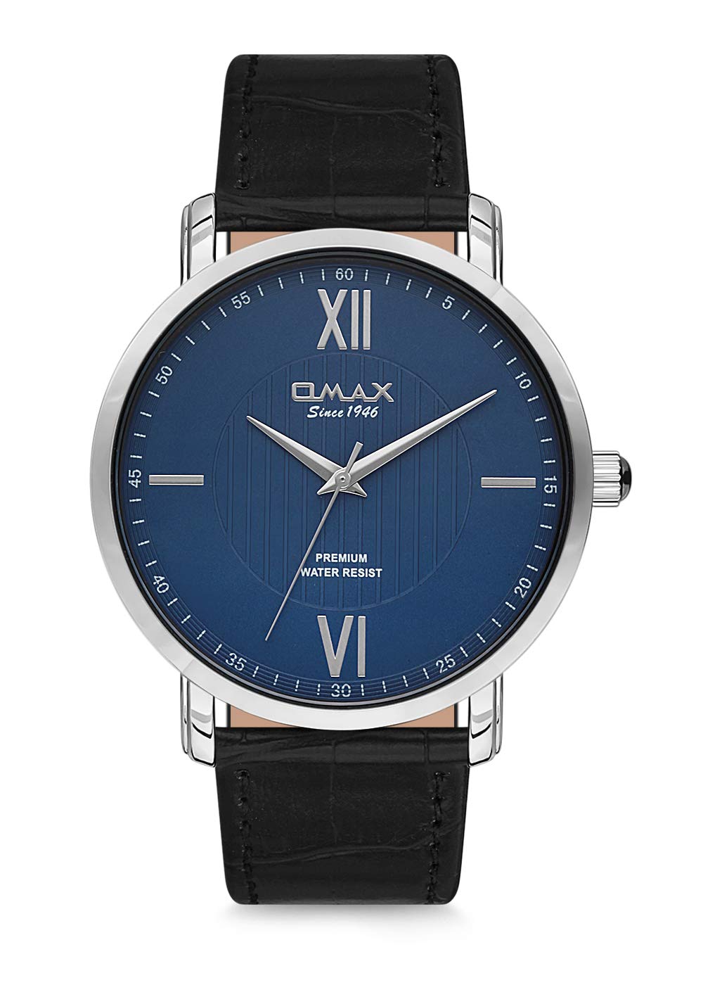 Omax Blue Dial Silver Case and Index with Black Leather Watch for Men- GU03P42I