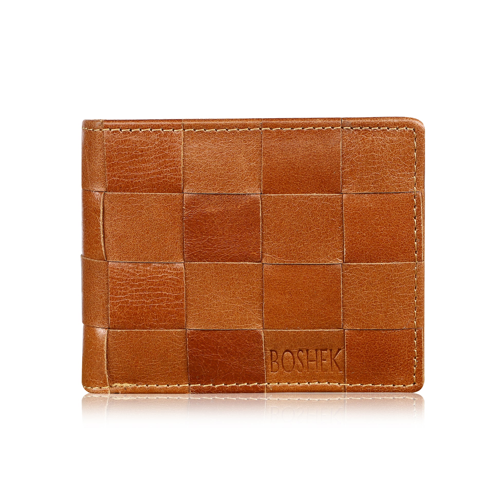 BOSHEK Tan Woven Criss Cross Crunch Leather Mens Wallet FW246