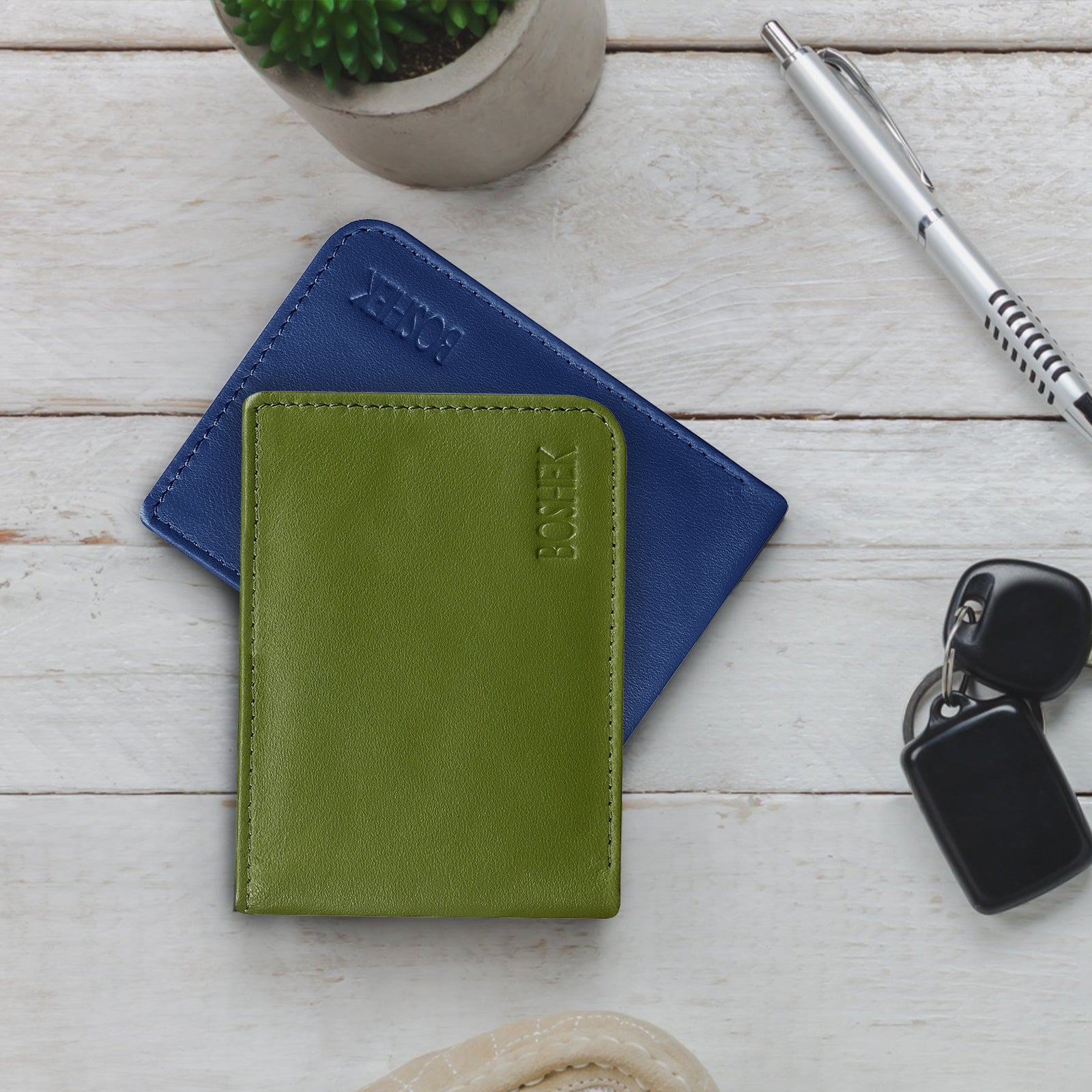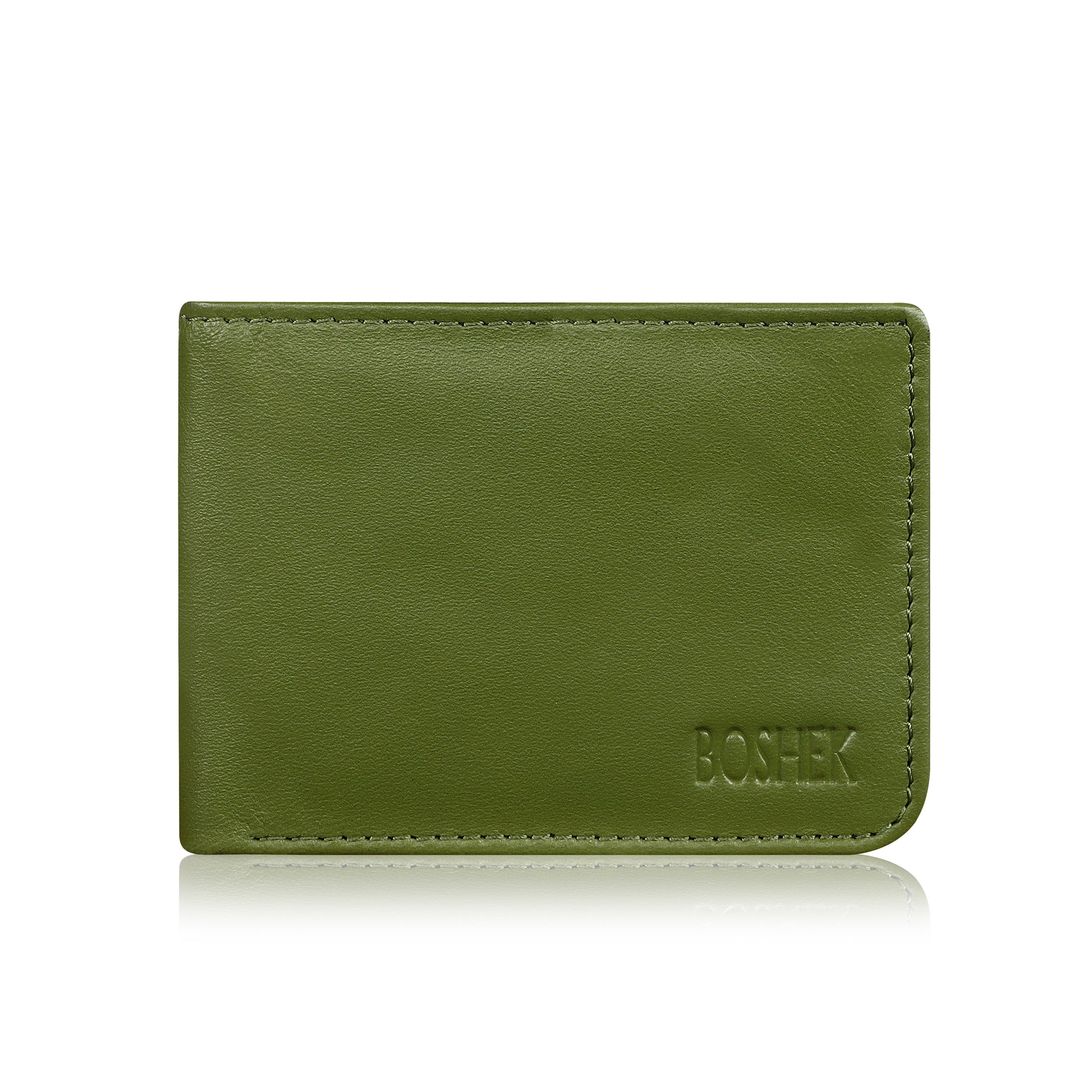 BOSHEK Green Leather Wallet Slim and Feather weight FW22
