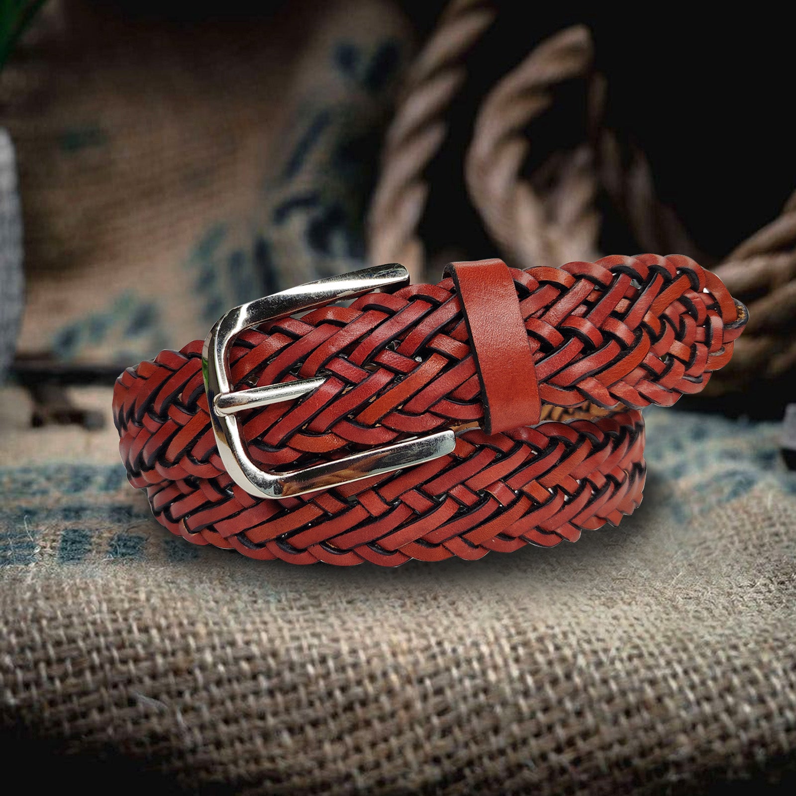 Omax Tan Genuine Leather Premium Braided Belts for men BLTBTL025