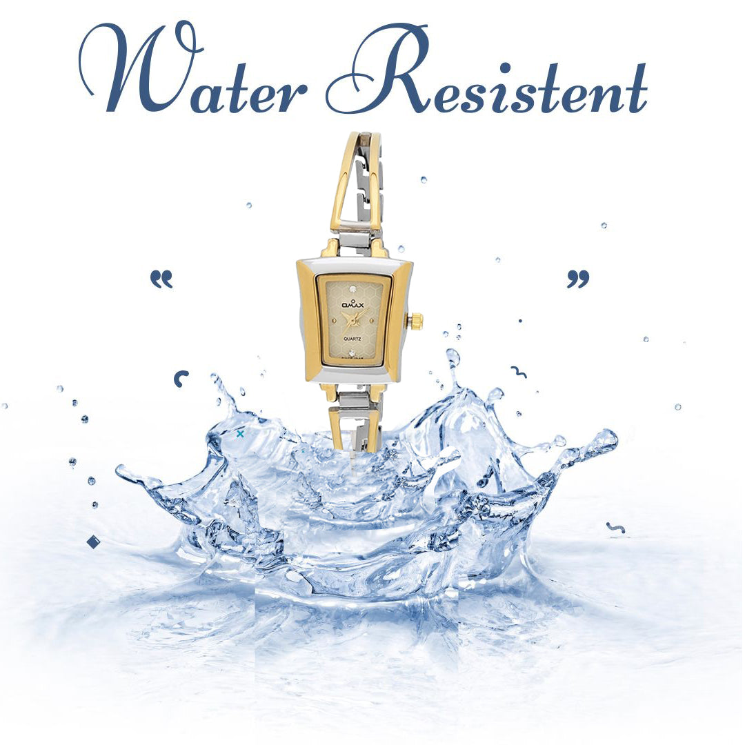 Omax Analog Golden Rectangle Dial With Stainless Steel Gold Silver Brecelete Style Strap Watch for Women BLS204A001